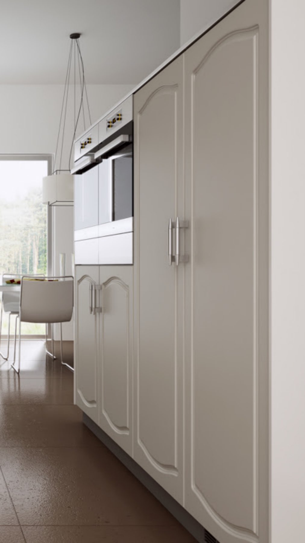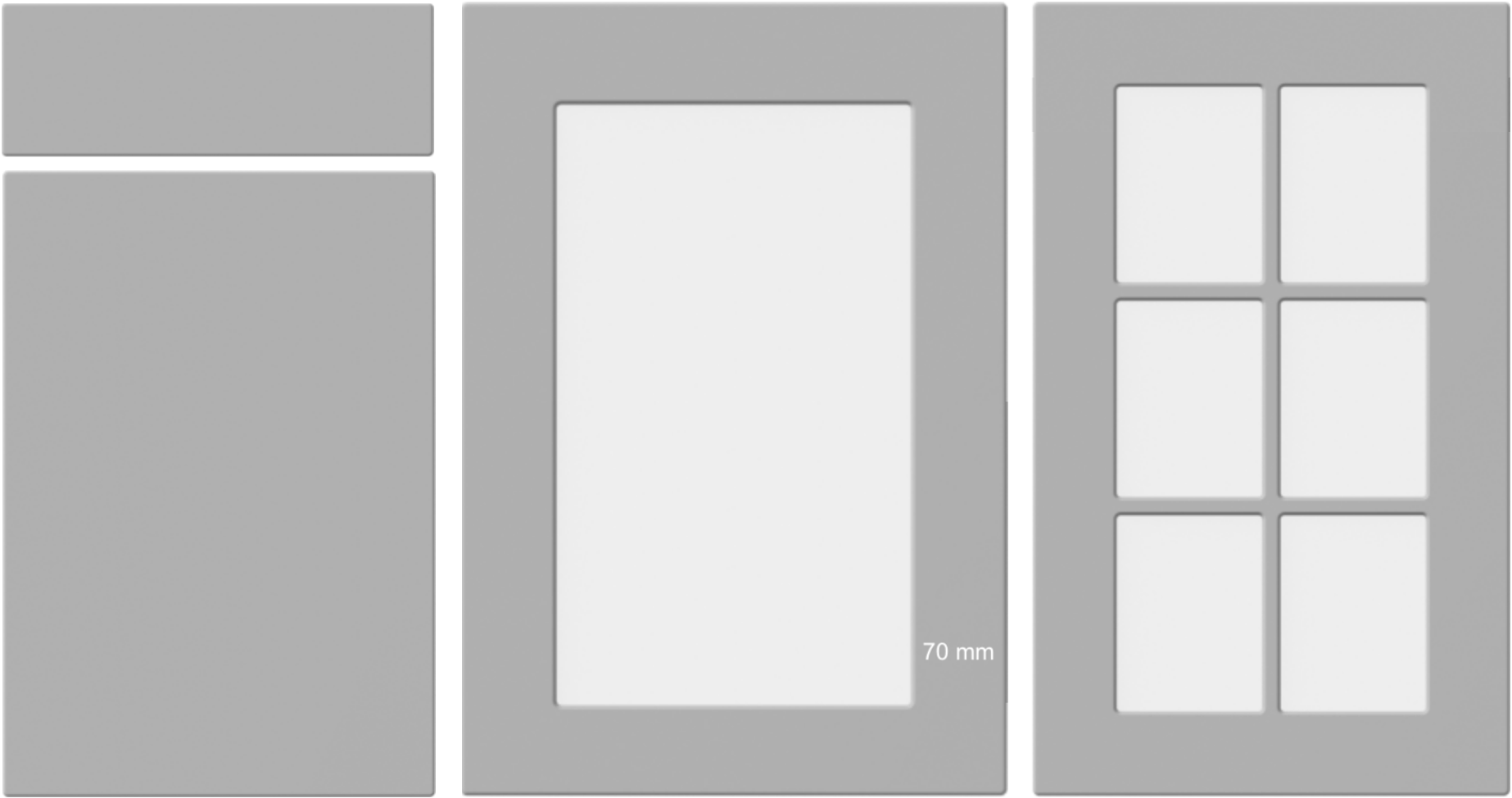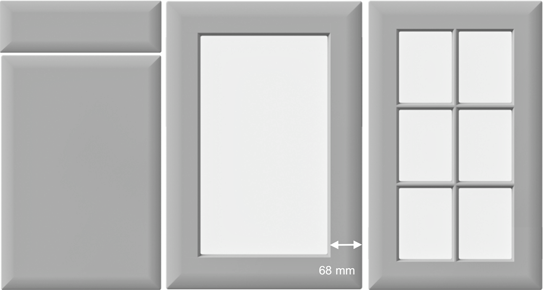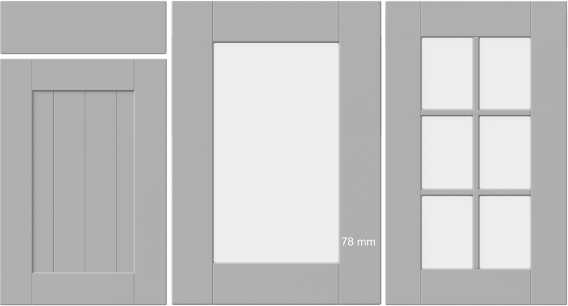 Very Retro! This slim and minimalistic shaker design is a classic in it’s own right. Not possible as glass panel doors due to the slim frames.