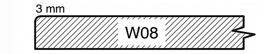 The W08 pattern is a design with flat a surface and with slightly rounded sides. 3 mm radius. W08 is a classic design and it leaves plenty of room to express yourself with bold handles.